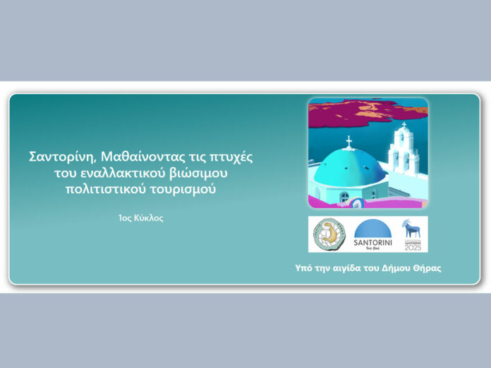 Ένα μοναδικό εκπαιδευτικό πρόγραμμα με επίκεντρο τον πολιτιστικό τουρισμό και τη βιώσιμη ανάπτυξη, διοργανώνει το Κέντρο Δια Βίου Μάθησης (ΚΕΔΙΒΙΜ) του Ελληνικού Ανοικτού Πανεπιστημίου. Το θερινό σχολείο θα πραγματοποιηθεί 16–23 Ιουλίου 2025 και απευθύνεται σε πτυχιούχος ΑΕΙ/ΤΕΙ/Σχολής Ξεναγών /Ταχύρρυθμων Σεμιναρίων Κατάρτισης Ξεναγών από Ελληνικά Πανεπιστήμια που ενδιαφέρονται να μάθουν για τον Πολιτιστικό Τουρισμό και θέλουν να συνδυάσουν την επιστημονική γνώση με την εμπειρία ενός τόπου–συμβόλου: της Σαντορίνης.